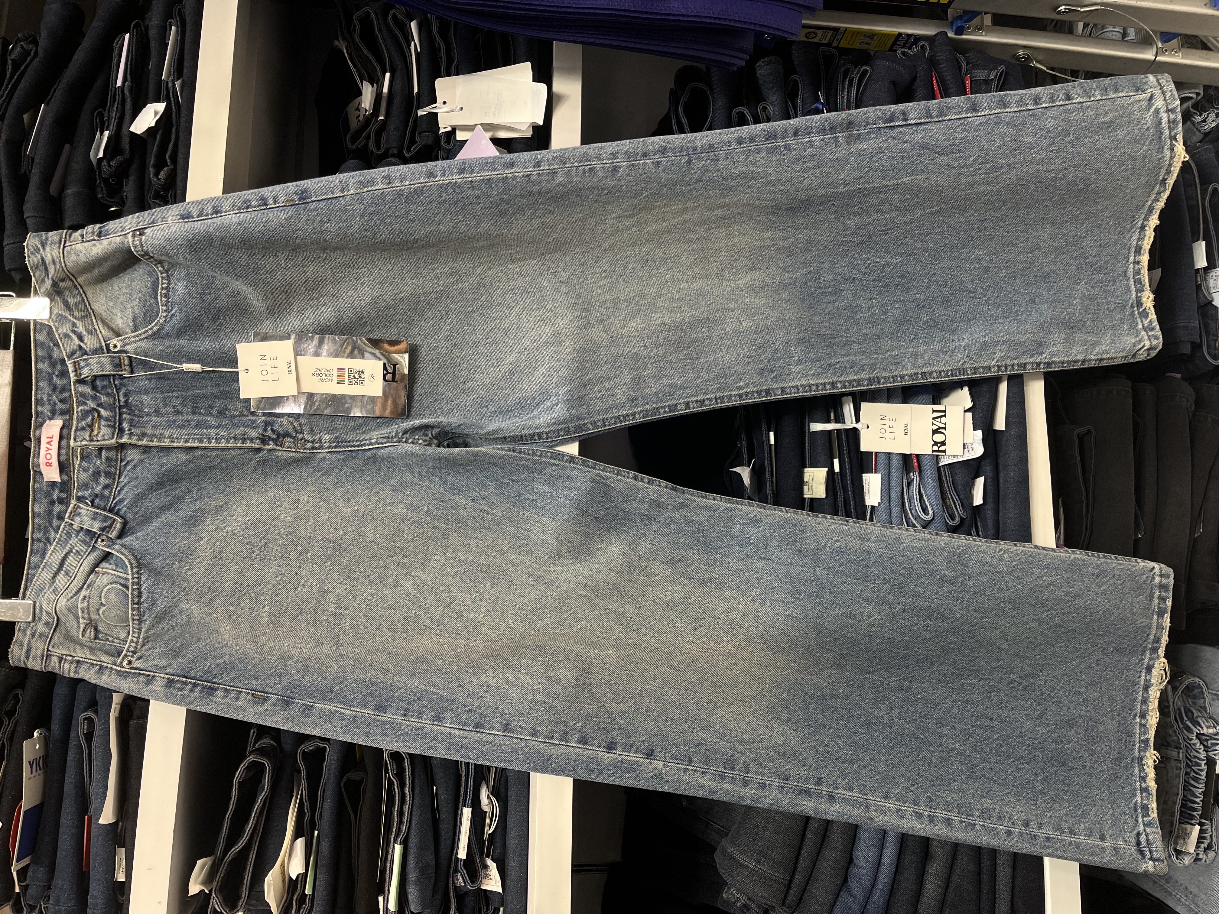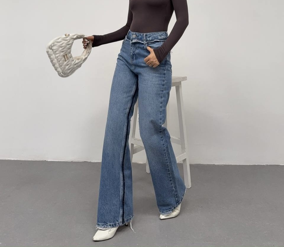 شلوار جین زنانه نیم بگ ابی وسط جک پات ریزشی رویال