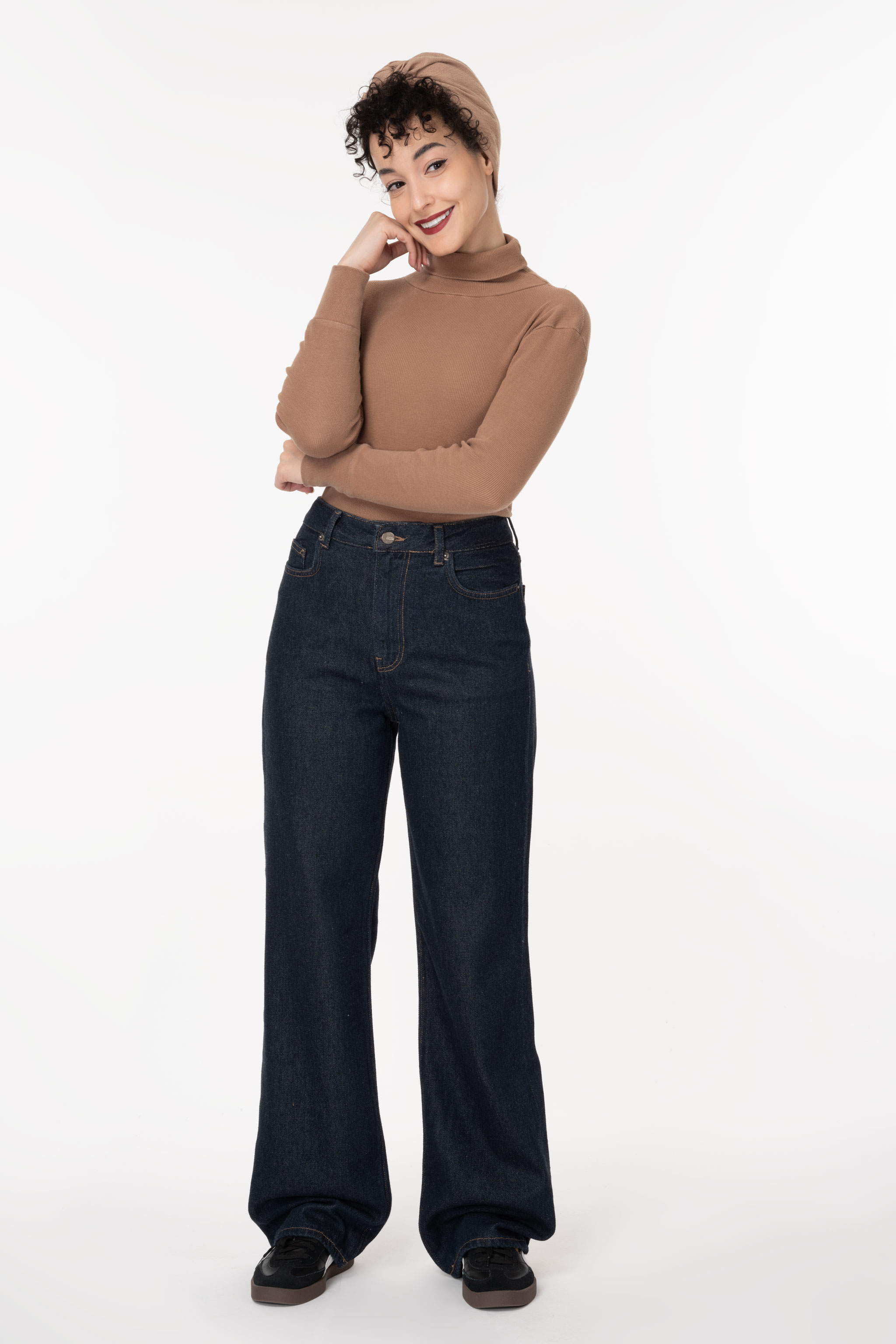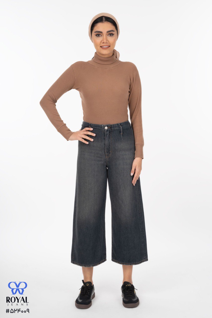 شلوار جین زنانه نیم بگ قهوه ای جک پات ریزشی رویال