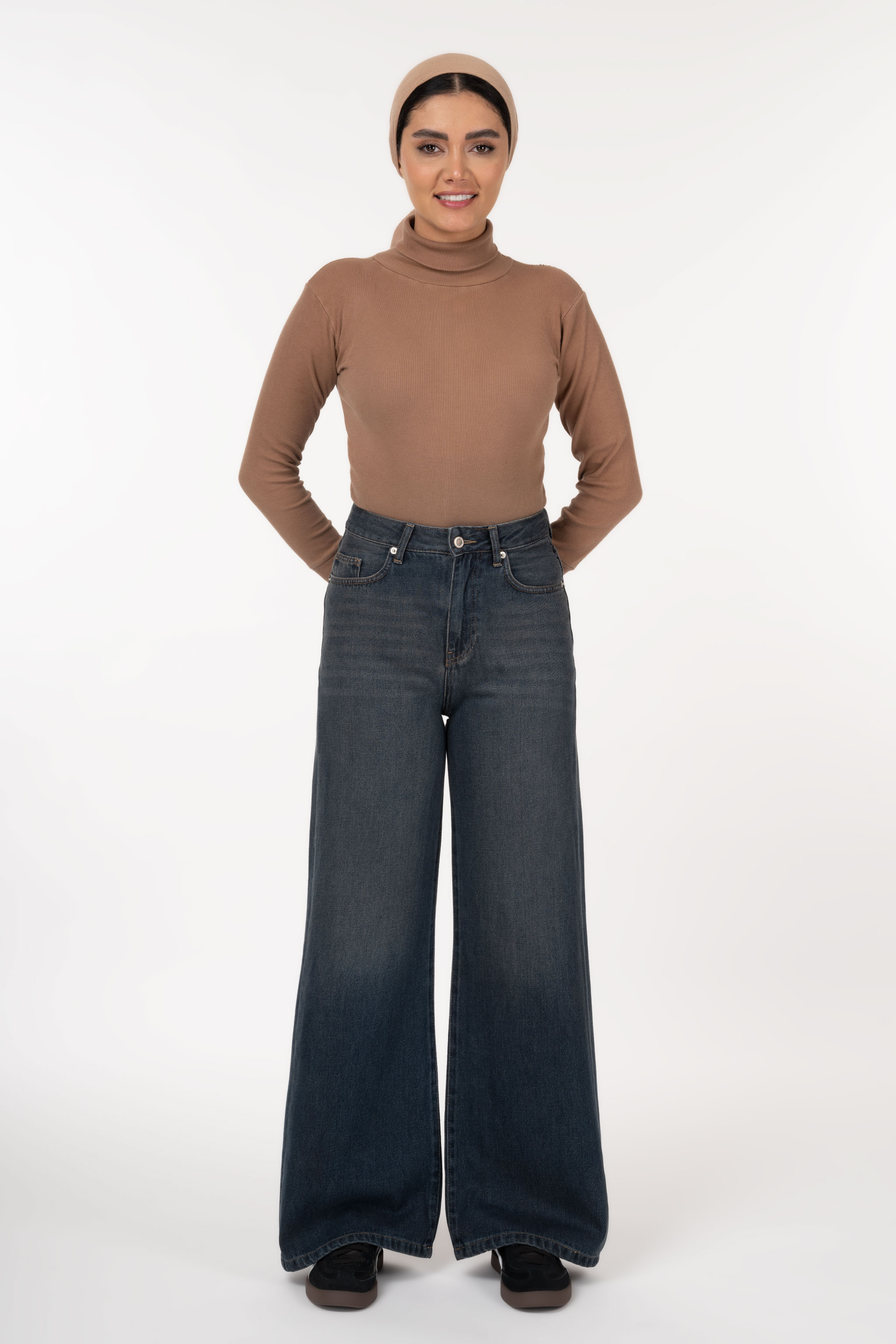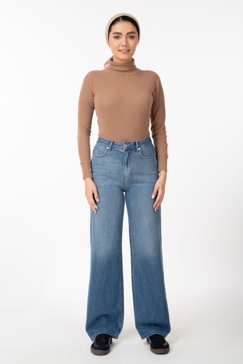 شلوار جین زنانه واید لگ قد ۹۰ آبی کثیف شور جک پات رویال جین