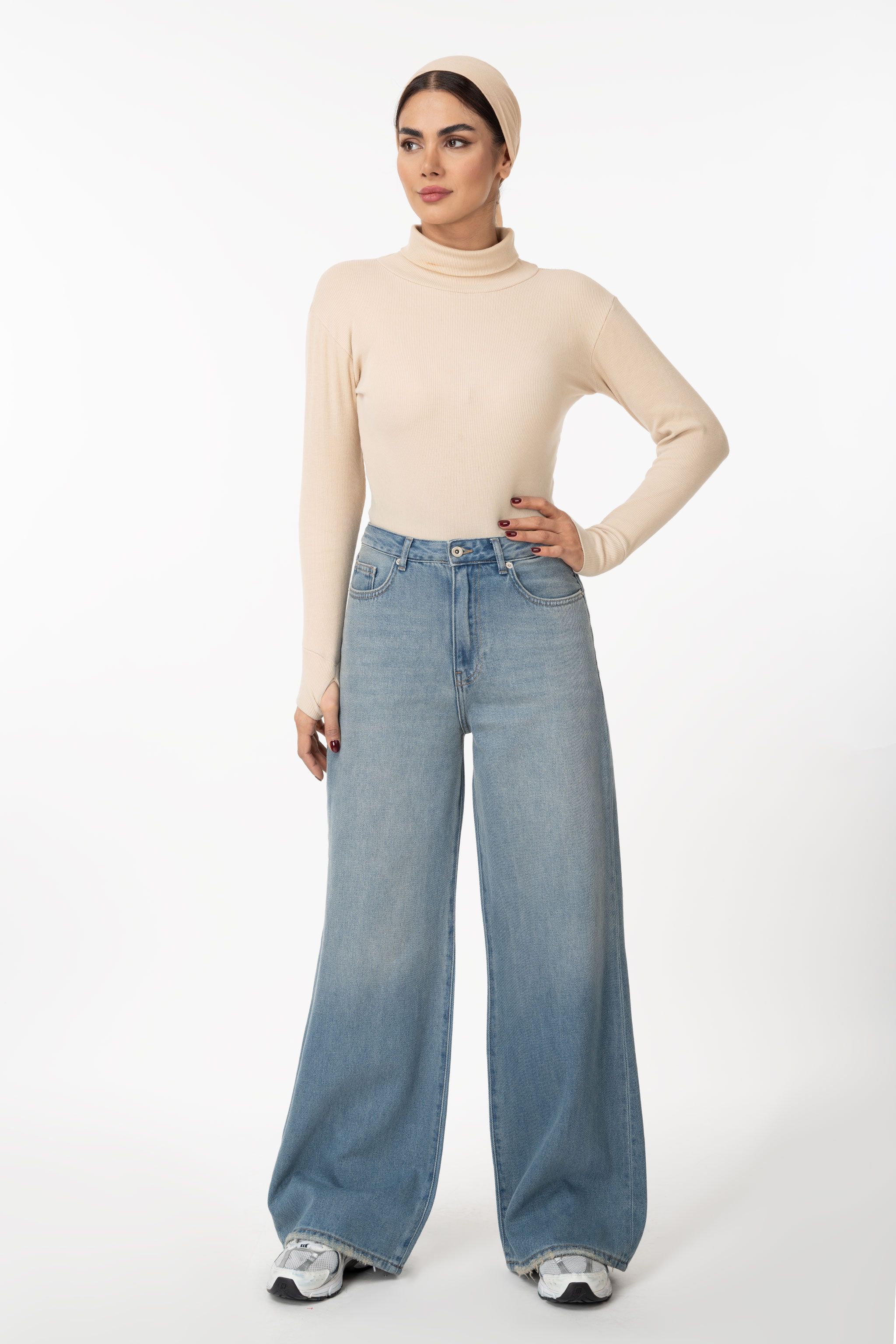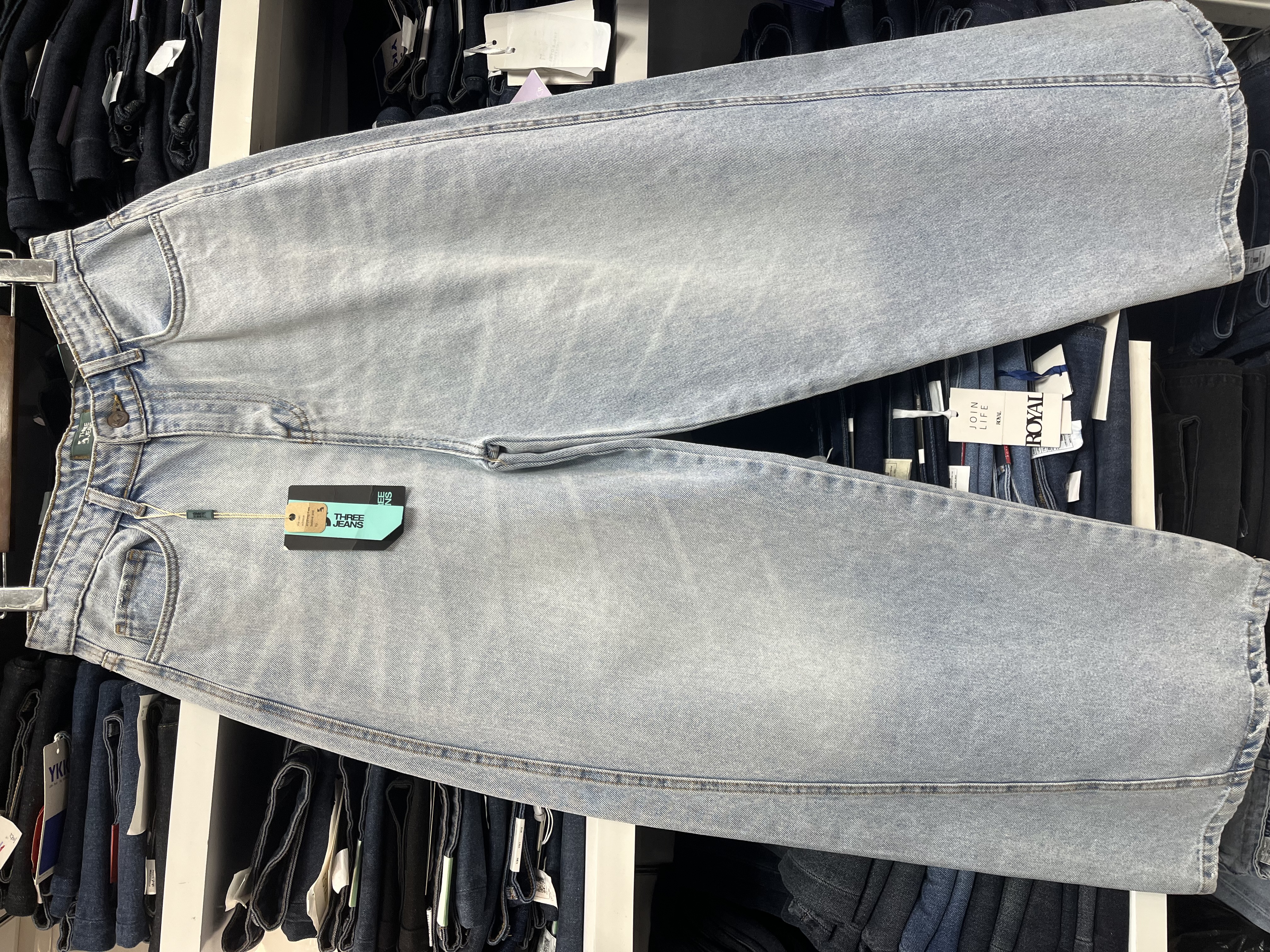 شلوار جین زنانه نیم بگ ابی روشن جک پات ریزشی رویال