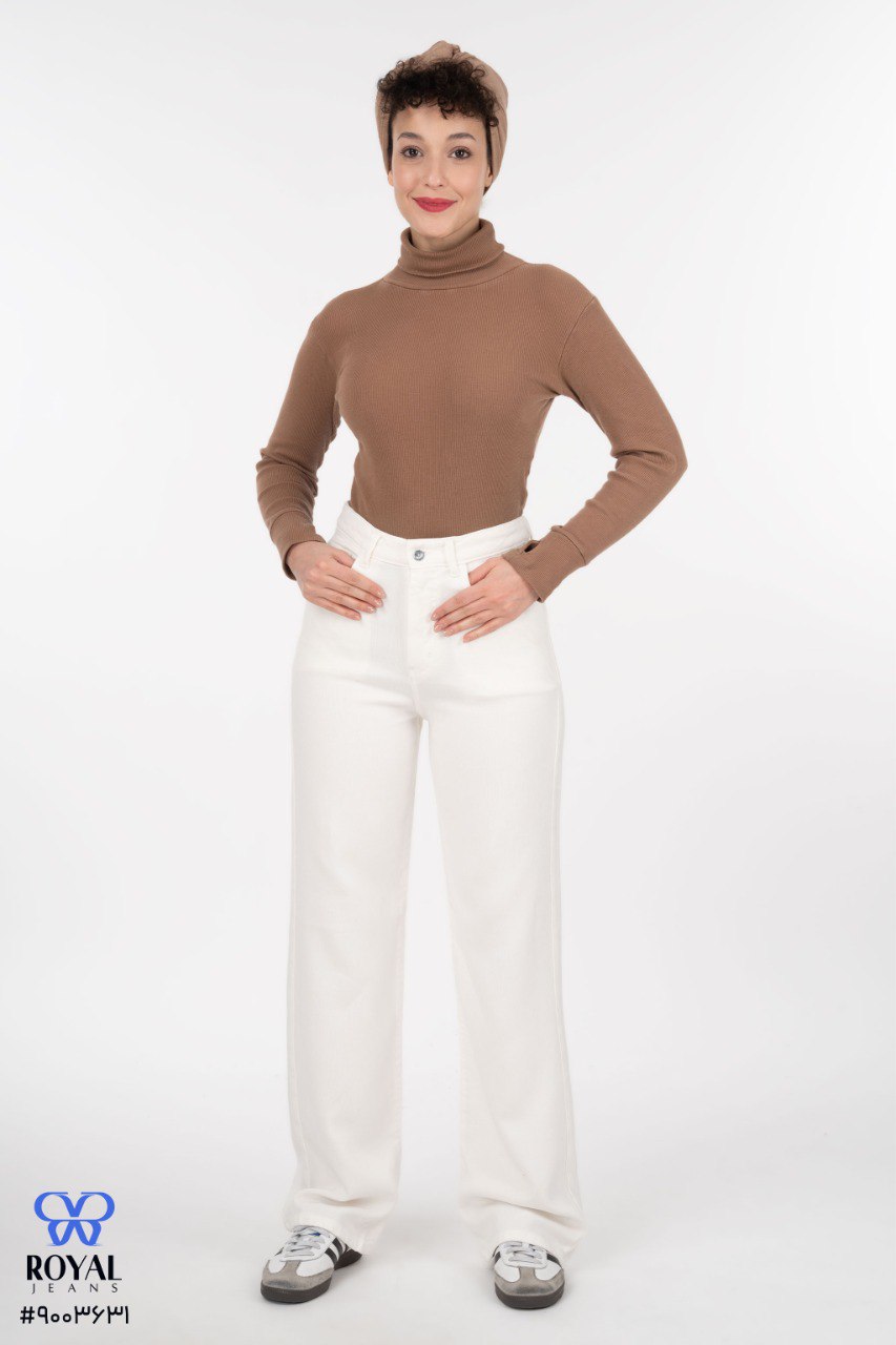 شلوار جین زنانه نیم بگ سفید جک پات ریزشی رویال جین