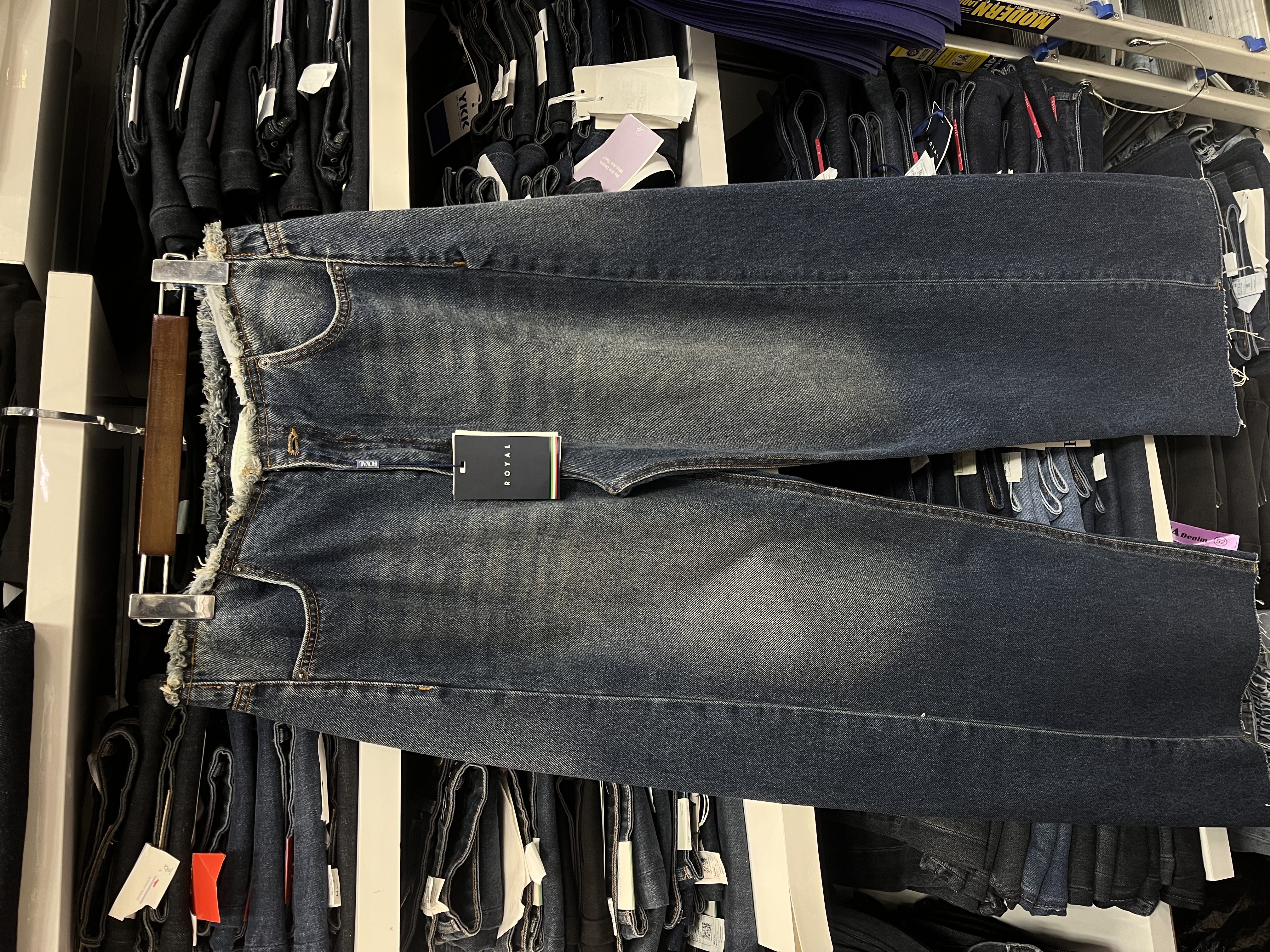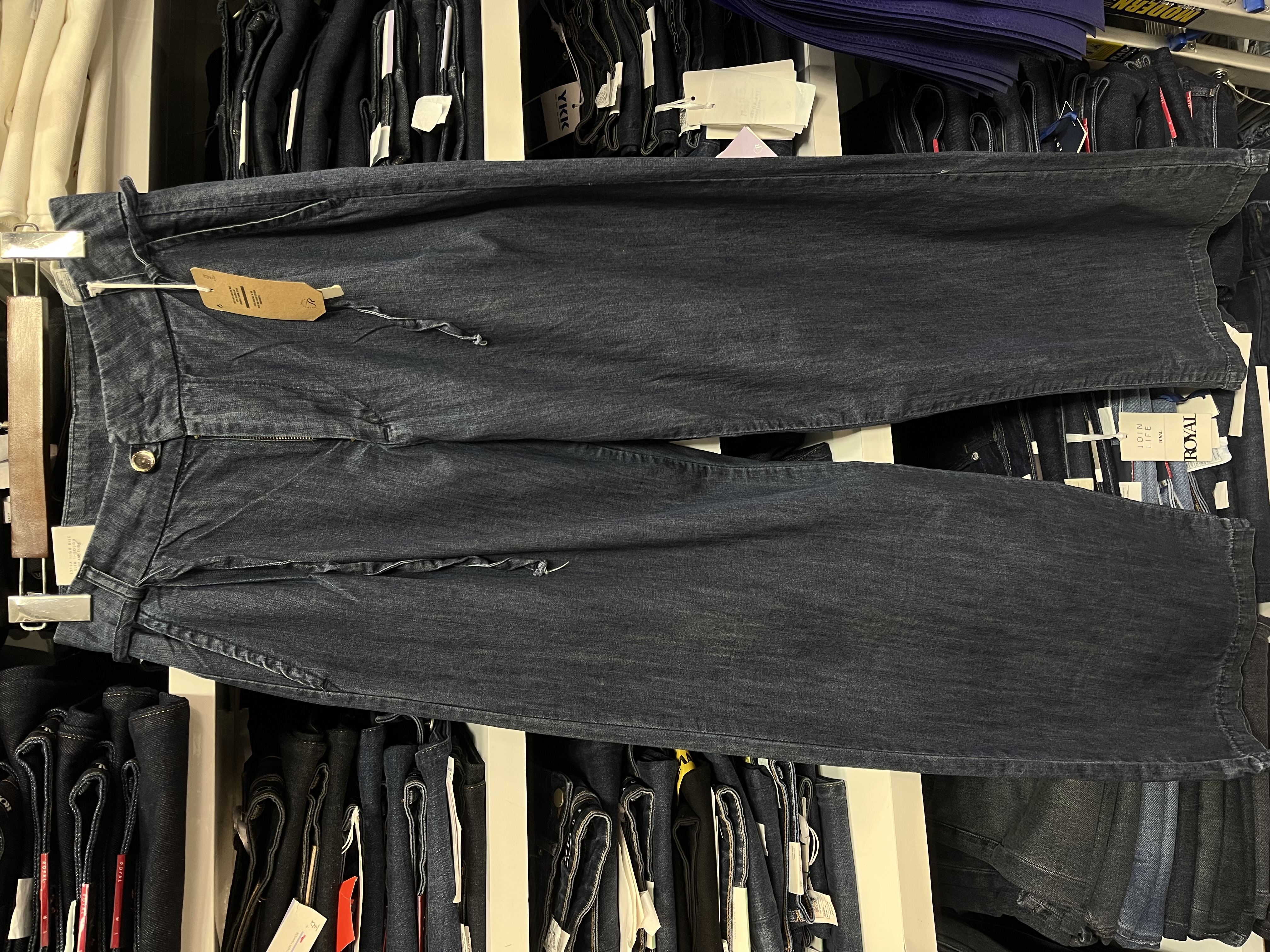 شلوار جین زنانه نیم بگ سرمه ای خام شور جک پات ریزشی رویال