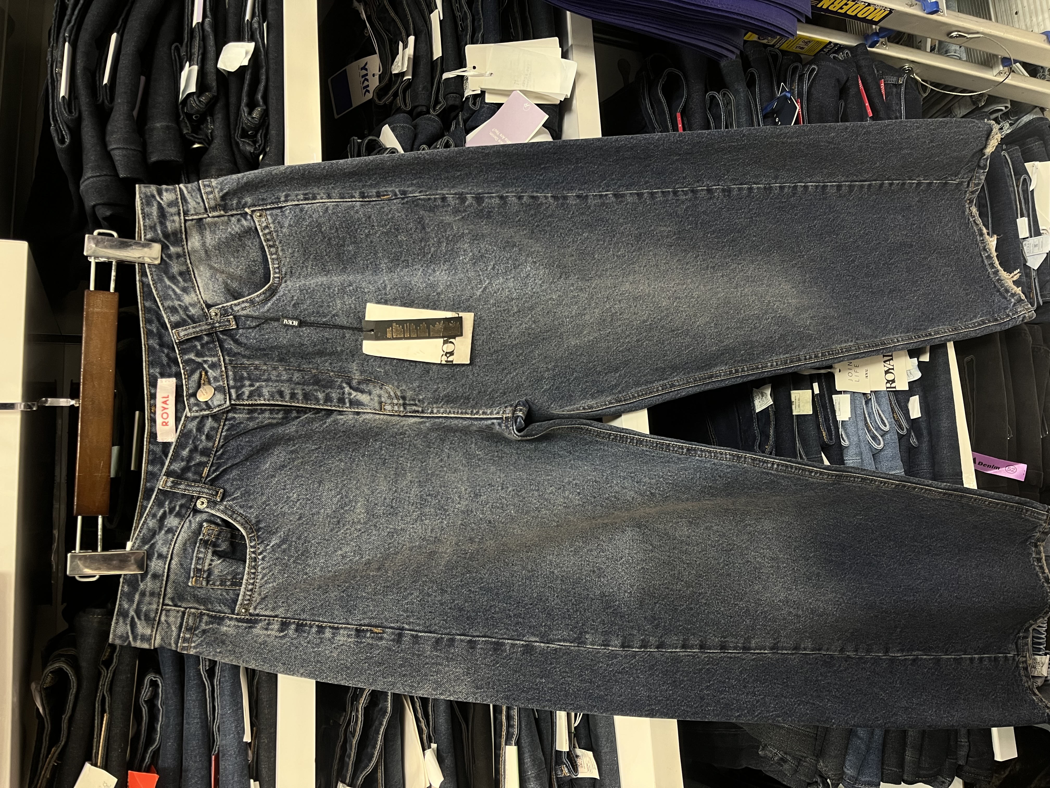 شلوار جین زنانه بگی آبی تیره کثیف شور جک پات ریزشی رویال جین royal jeans
