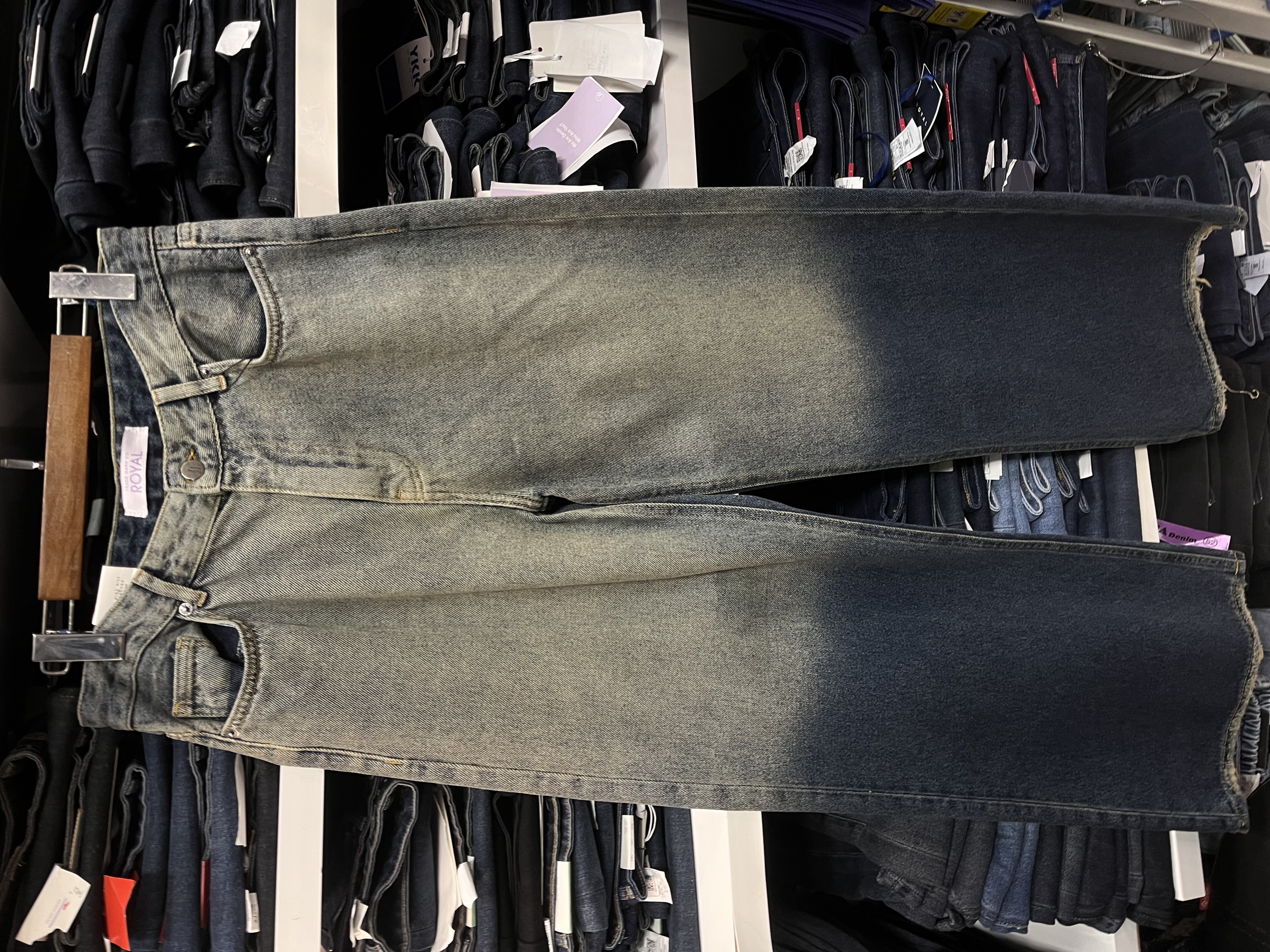 شلوار جین زنانه بگی سرمه ای خام شور جک پات ریزشی رویال