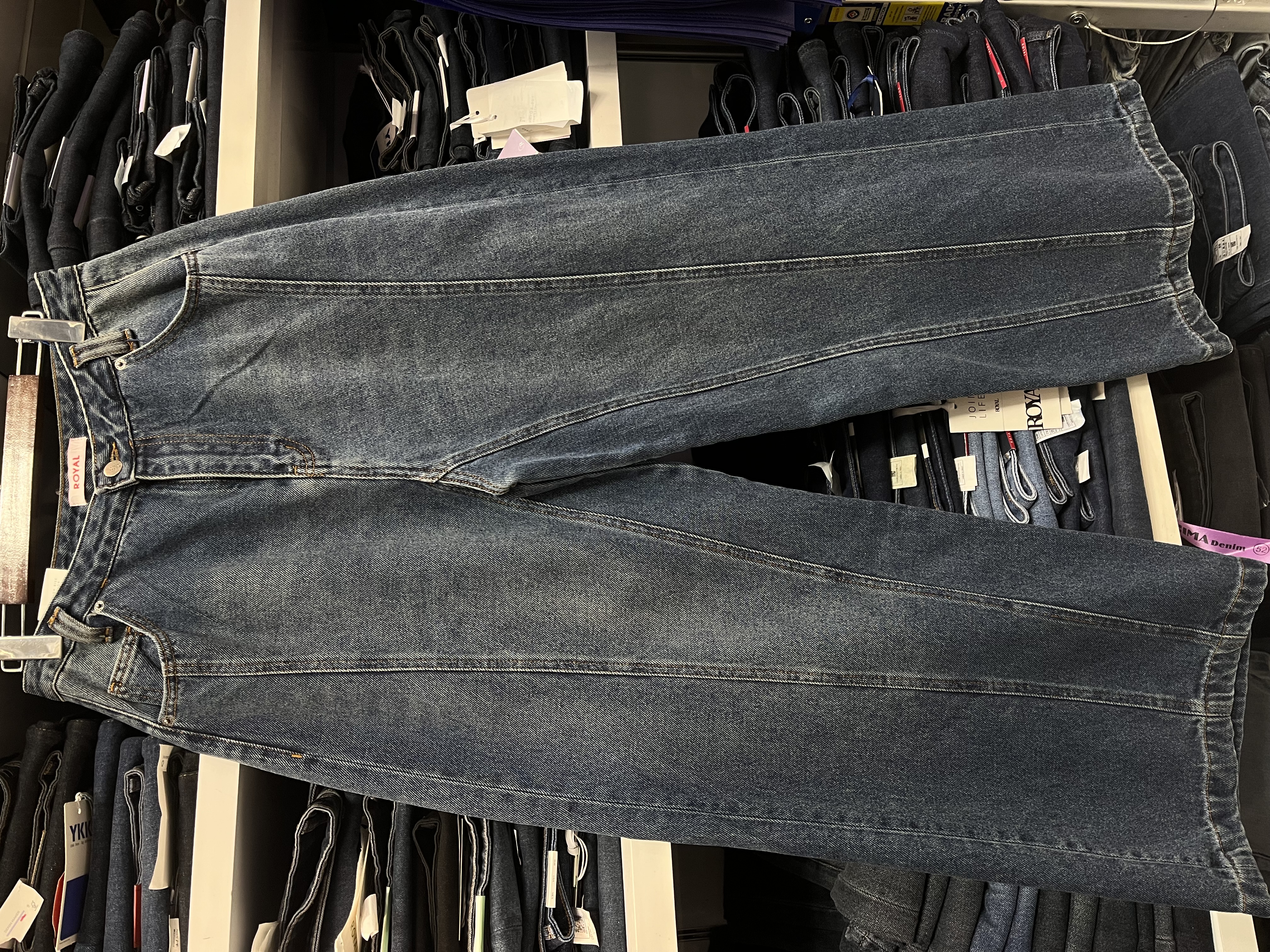 شلوار جین زنانه راسته آبی تیره کثیف(استریت لاین) جک پات ریزشی رویال جین royal jeans