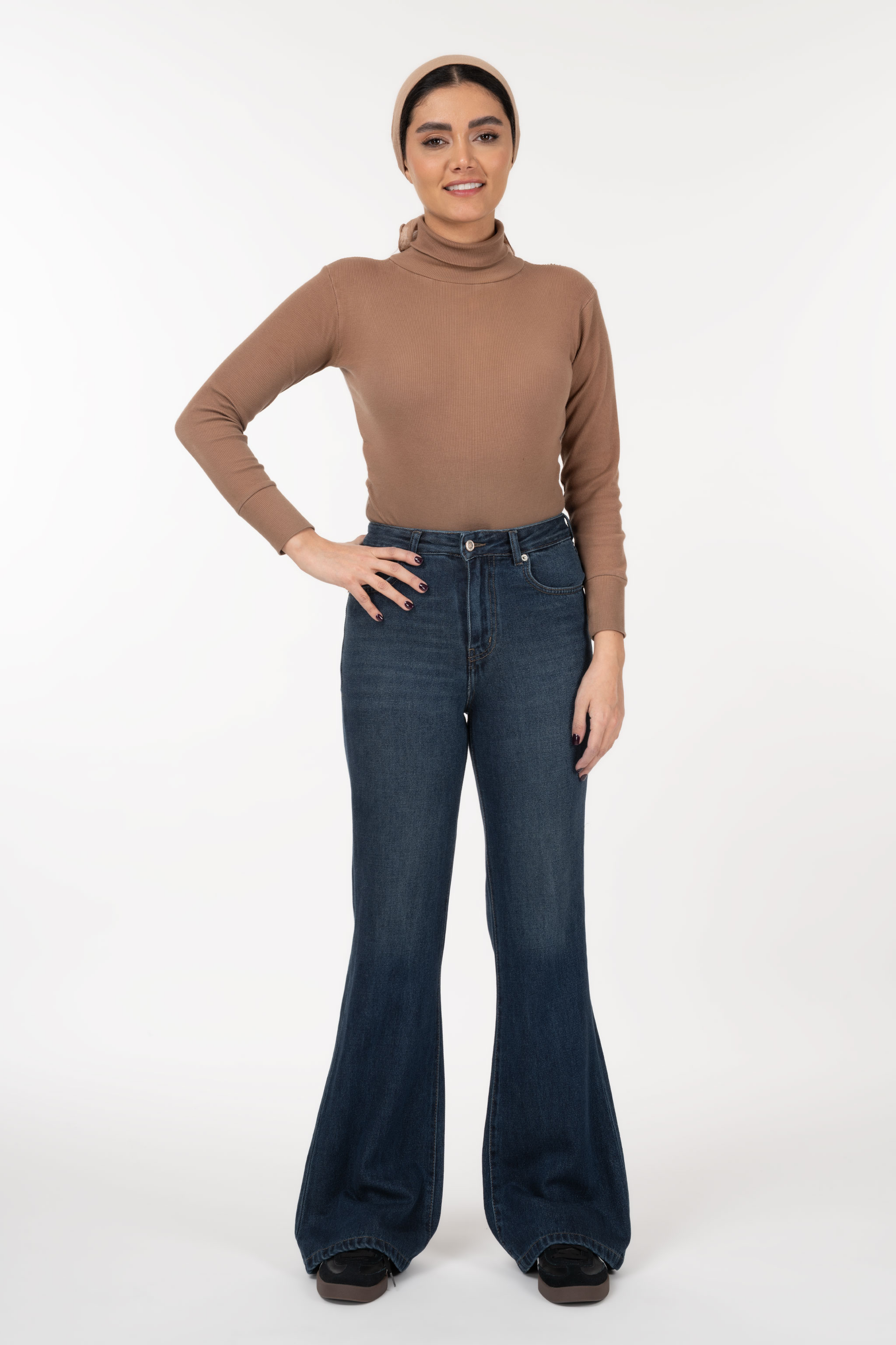 شلوار جین زنانه بوت کات آبی تیره پارچه ترک (دمپا گشاد) رویال جین royal jeans