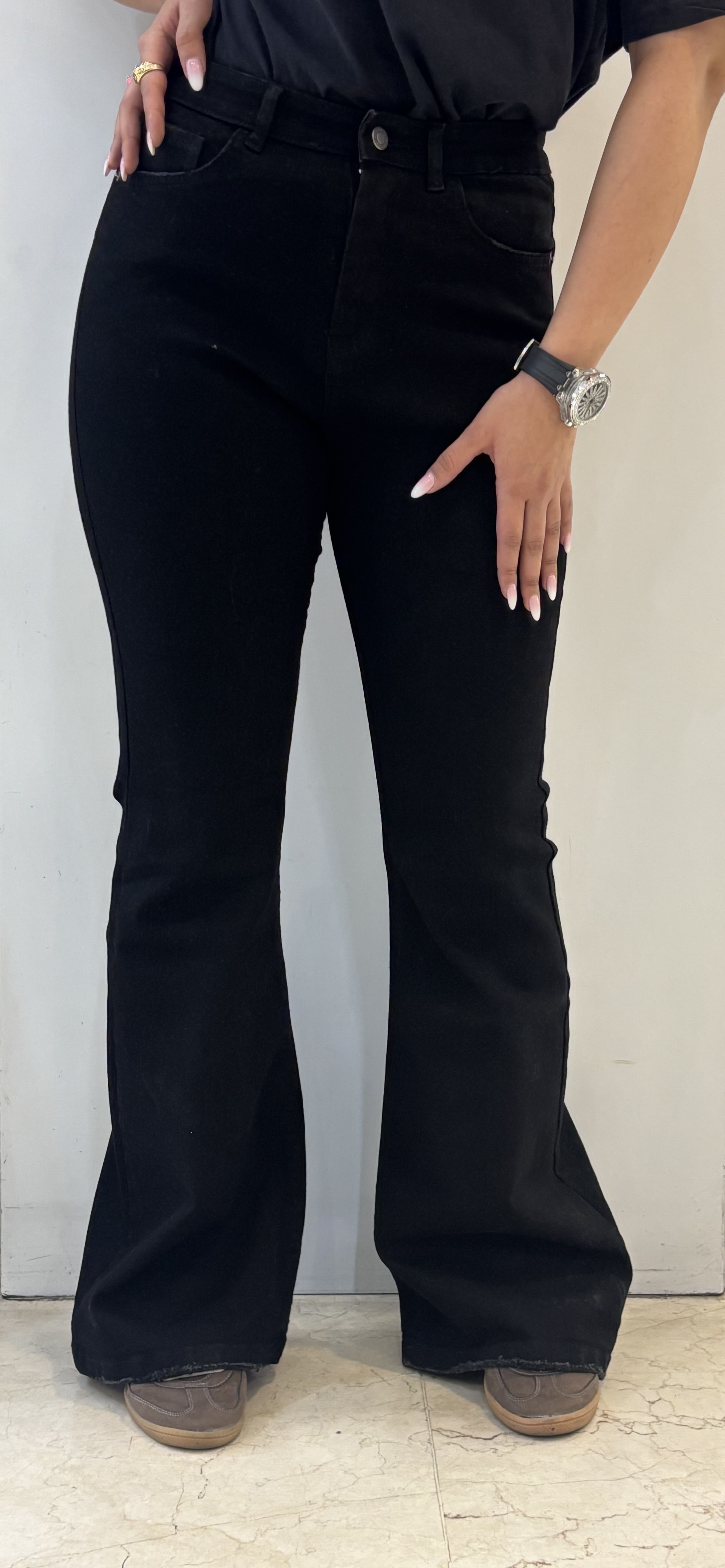 شلوار جین زنانه بوت کات مشکی پارچه ترک (دمپا گشاد)
