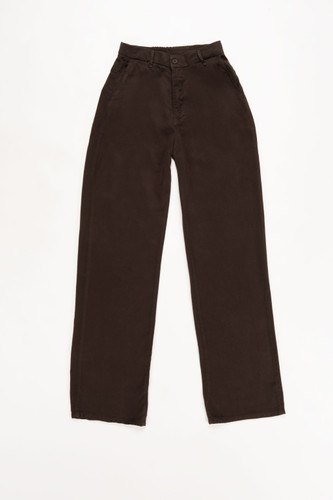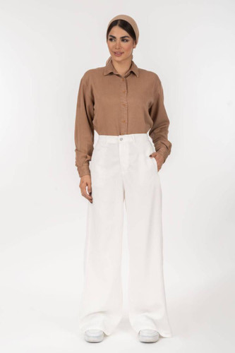 شلوار کتان زنانه نیم بگ سیلک مدرن قهوه ای سوخته رویال جین royal jean