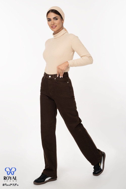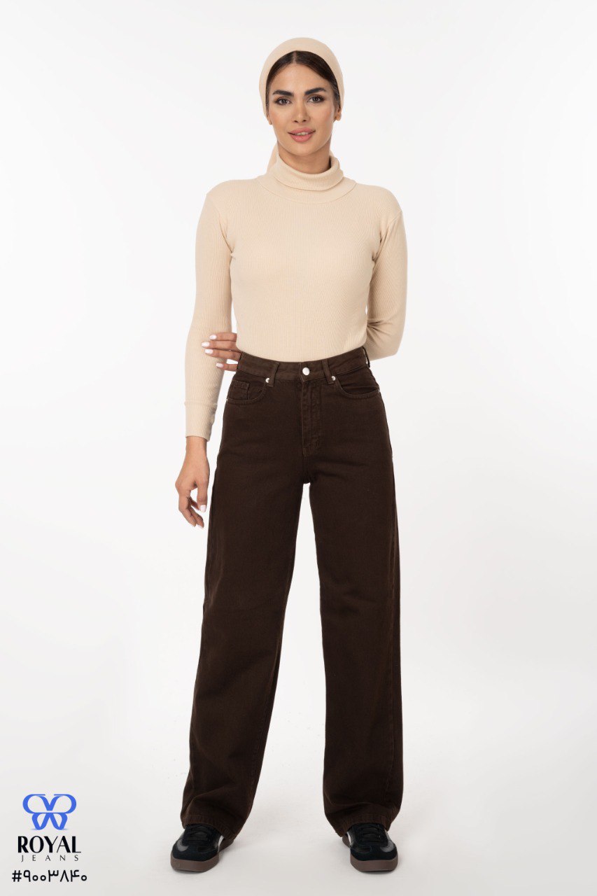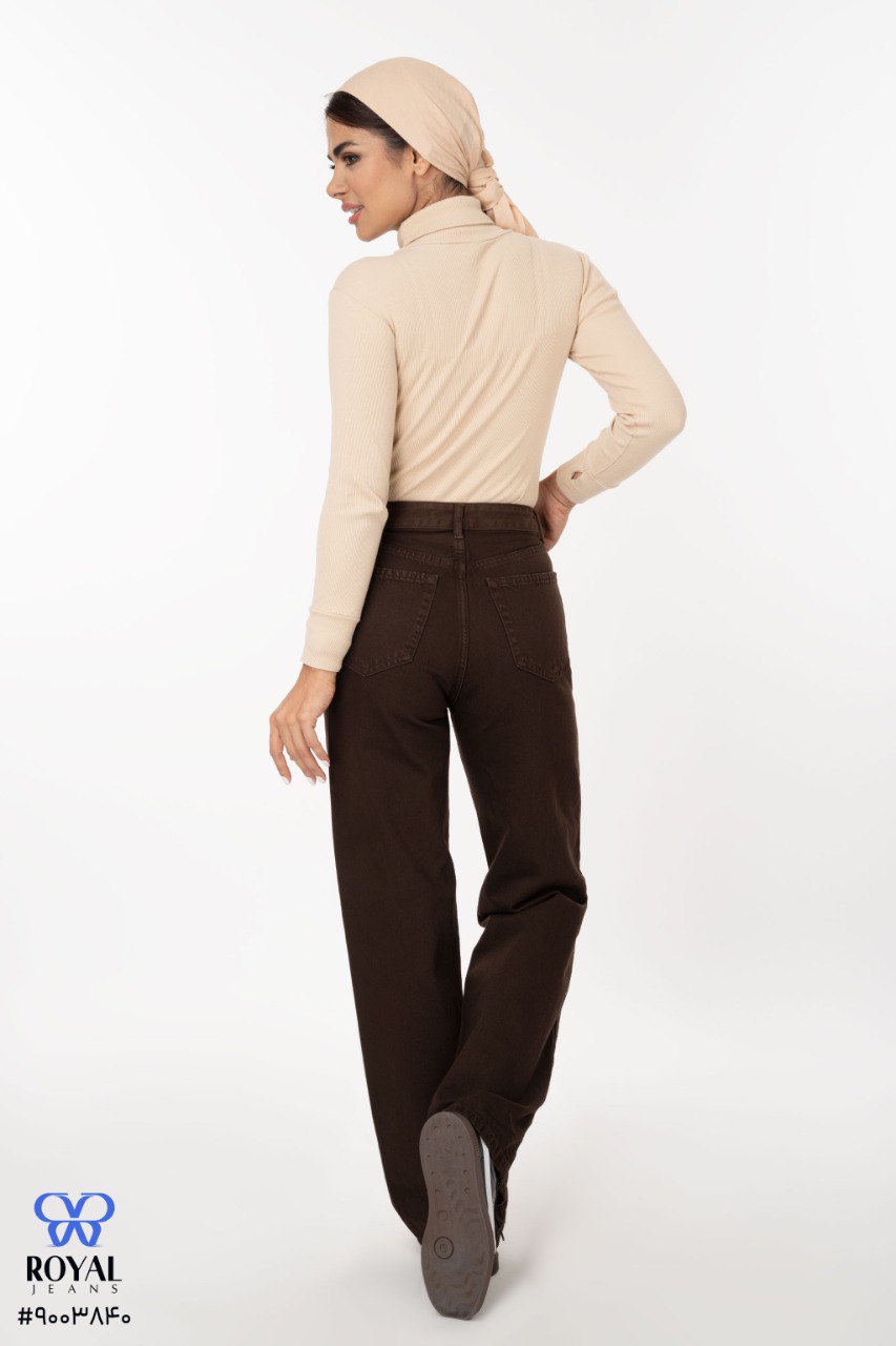 شلوار جین زنانه نیم بگ قهوه ای جک پات ریزشی رویال