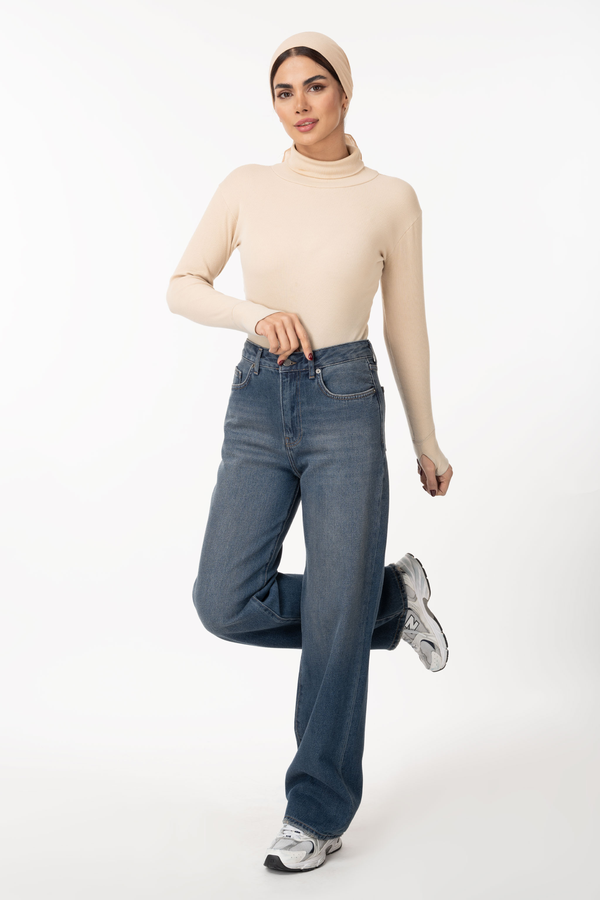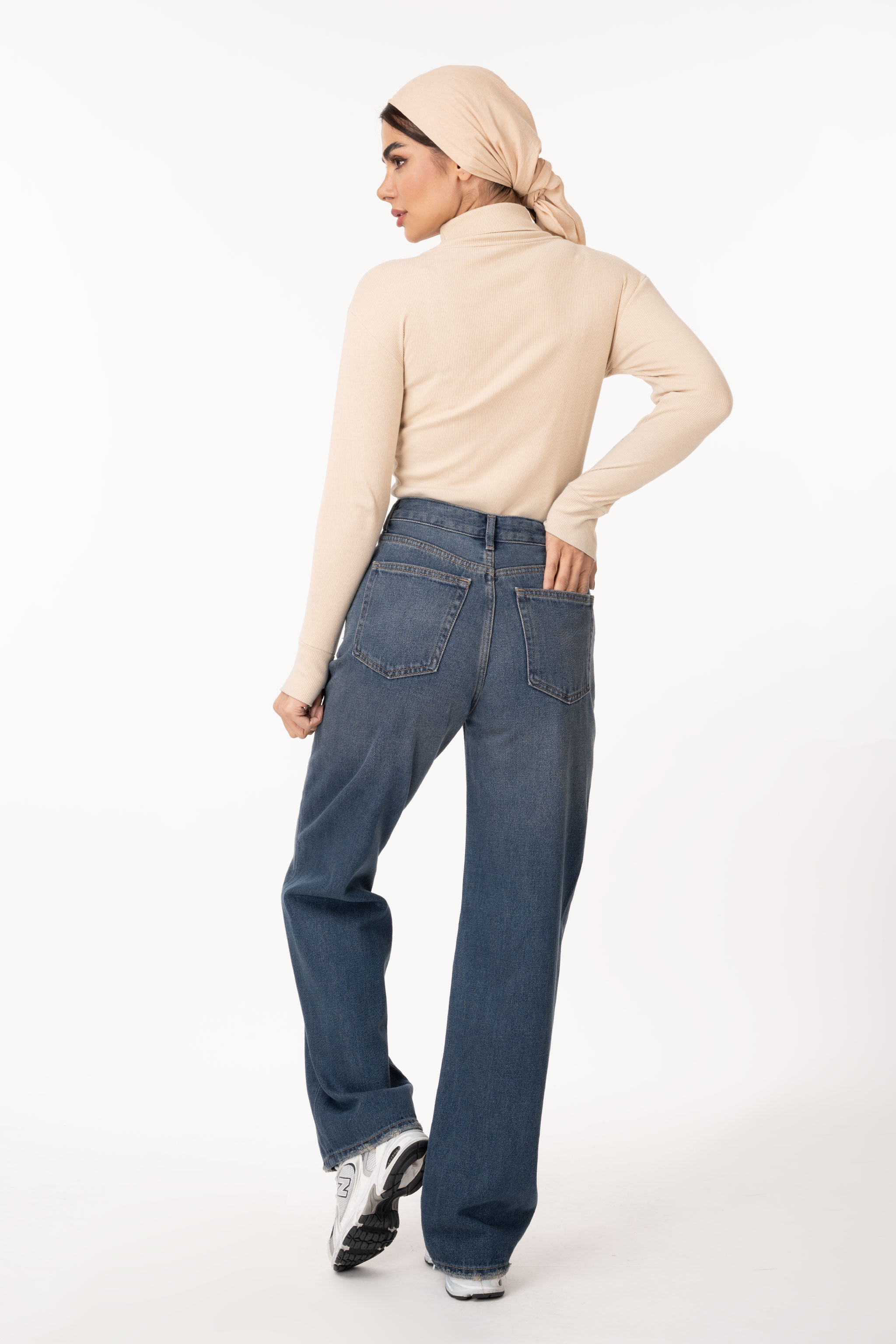 شلوار جین زنانه نیم بگ ابی جک پات ریزشی رویال