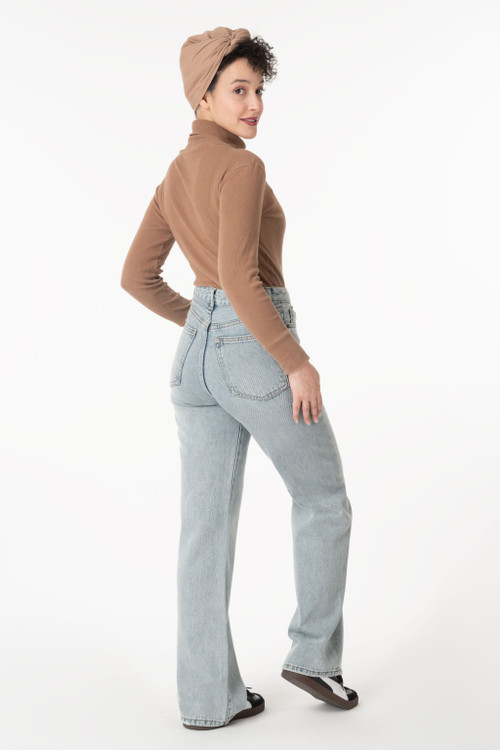شلوار جین زنانه نیم بگ ابی روشن جک پات ریزشی رویال