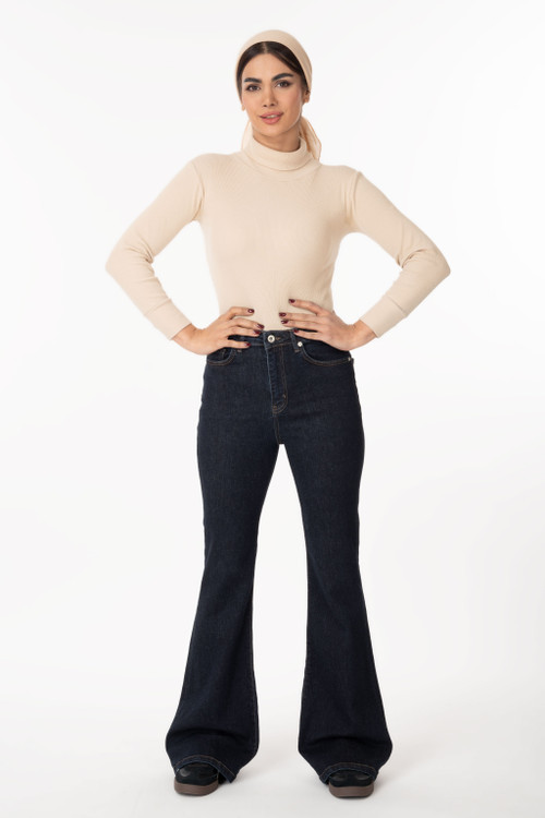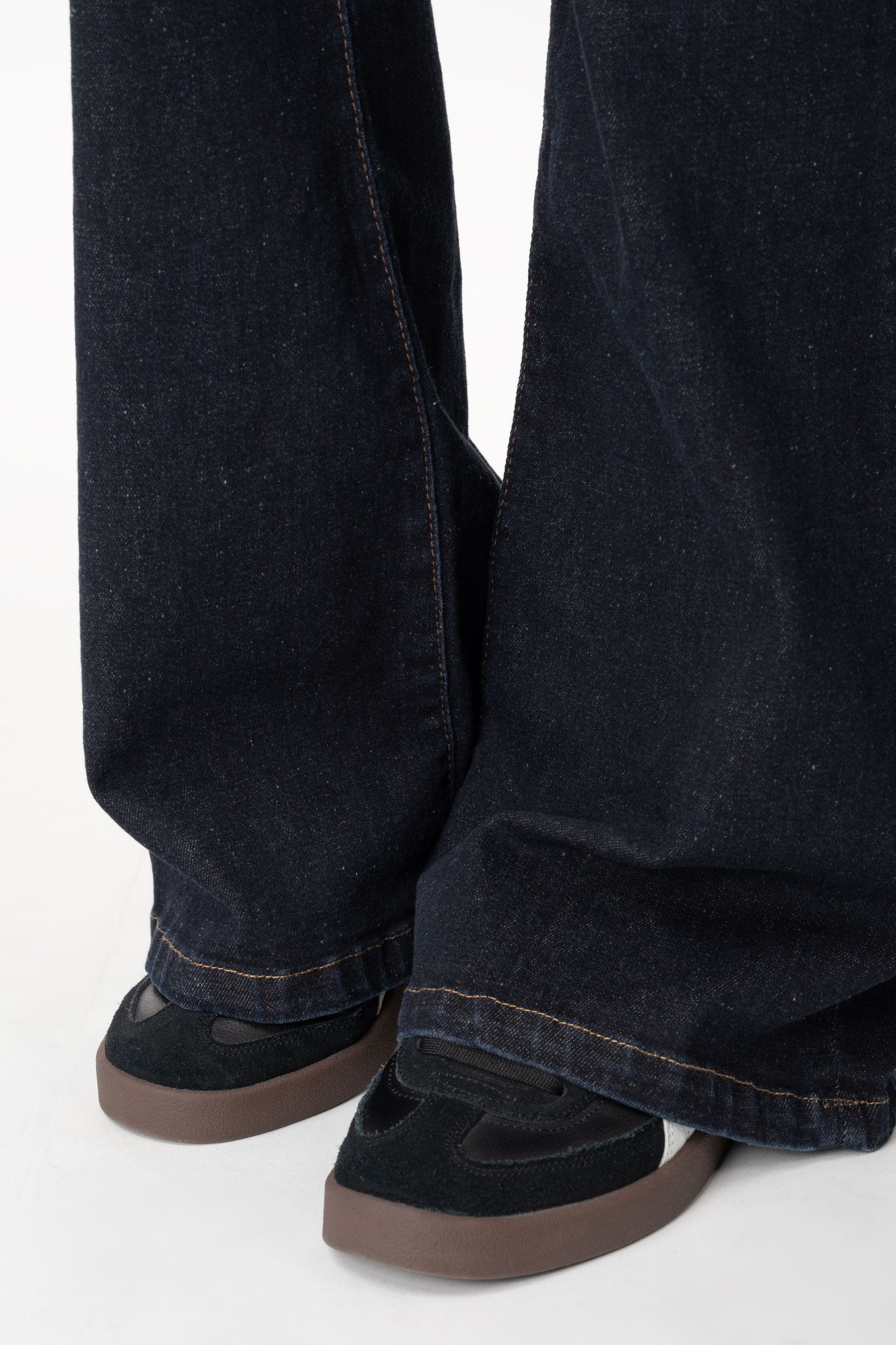 شلوار جین زنانه بوت کات سرمه ای خام شور (دمپا گشاد) رویال جین royal jeans
