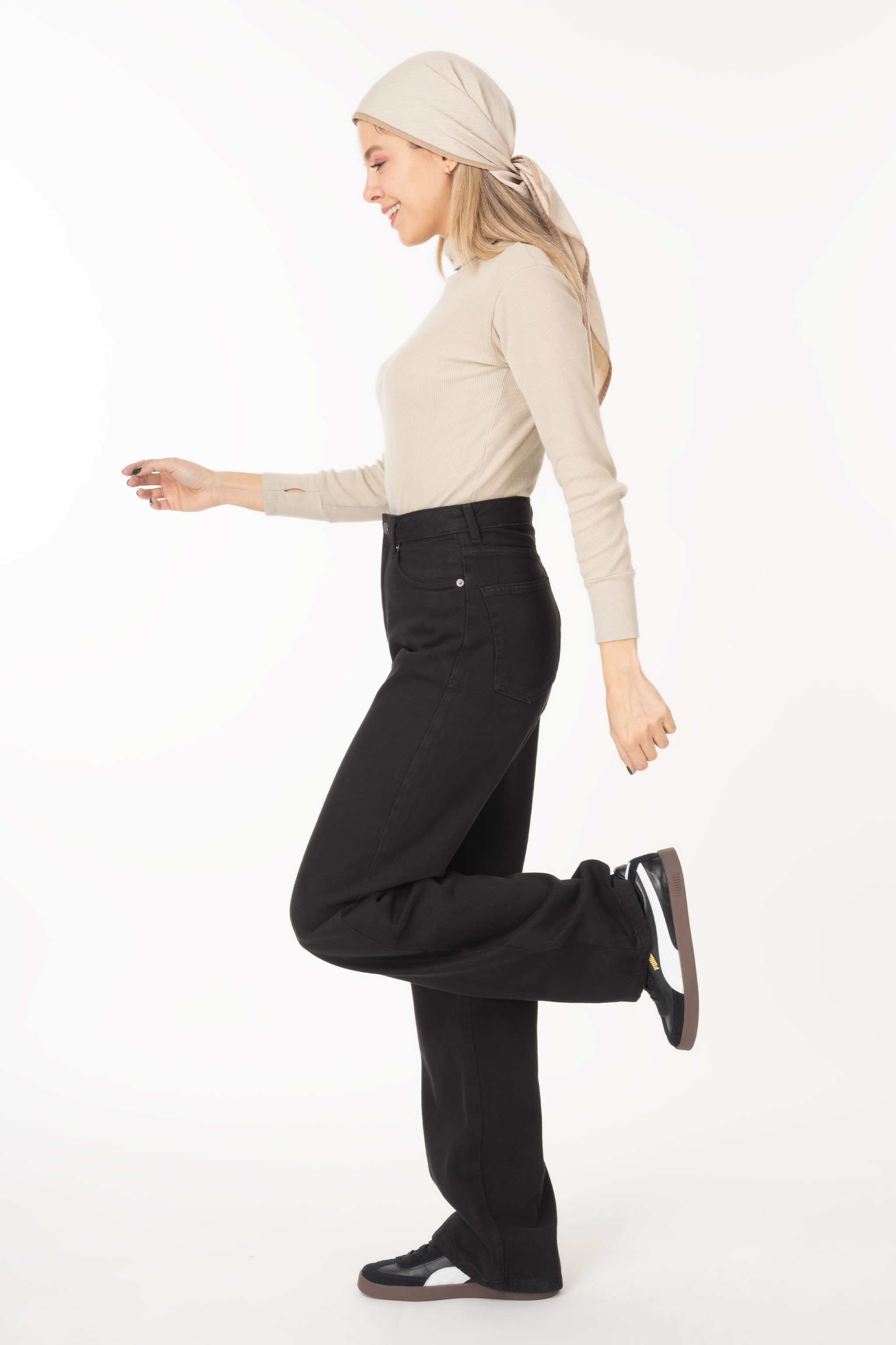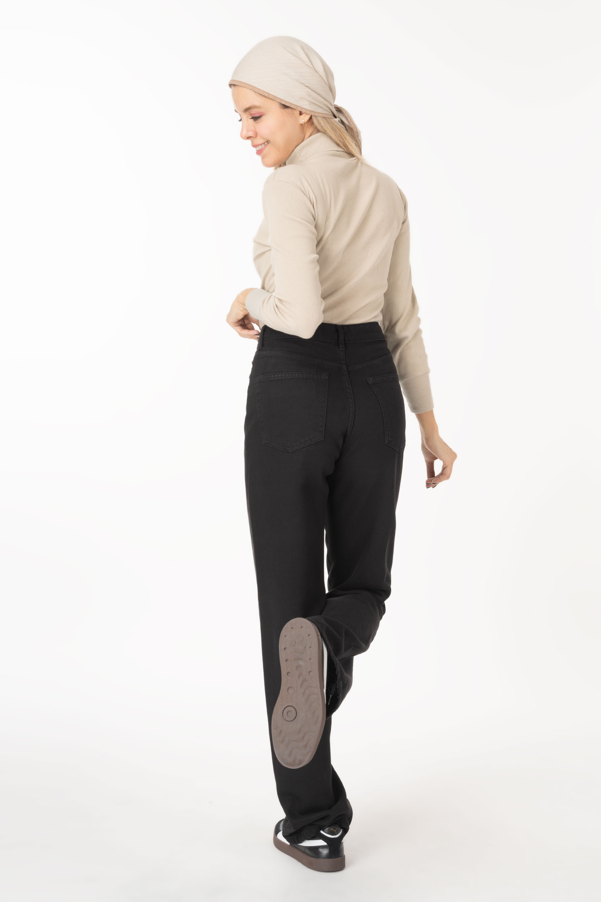 شلوار جین زنانه نیم بگ مشکی جک پات ریزشی رویال جین royal jeans