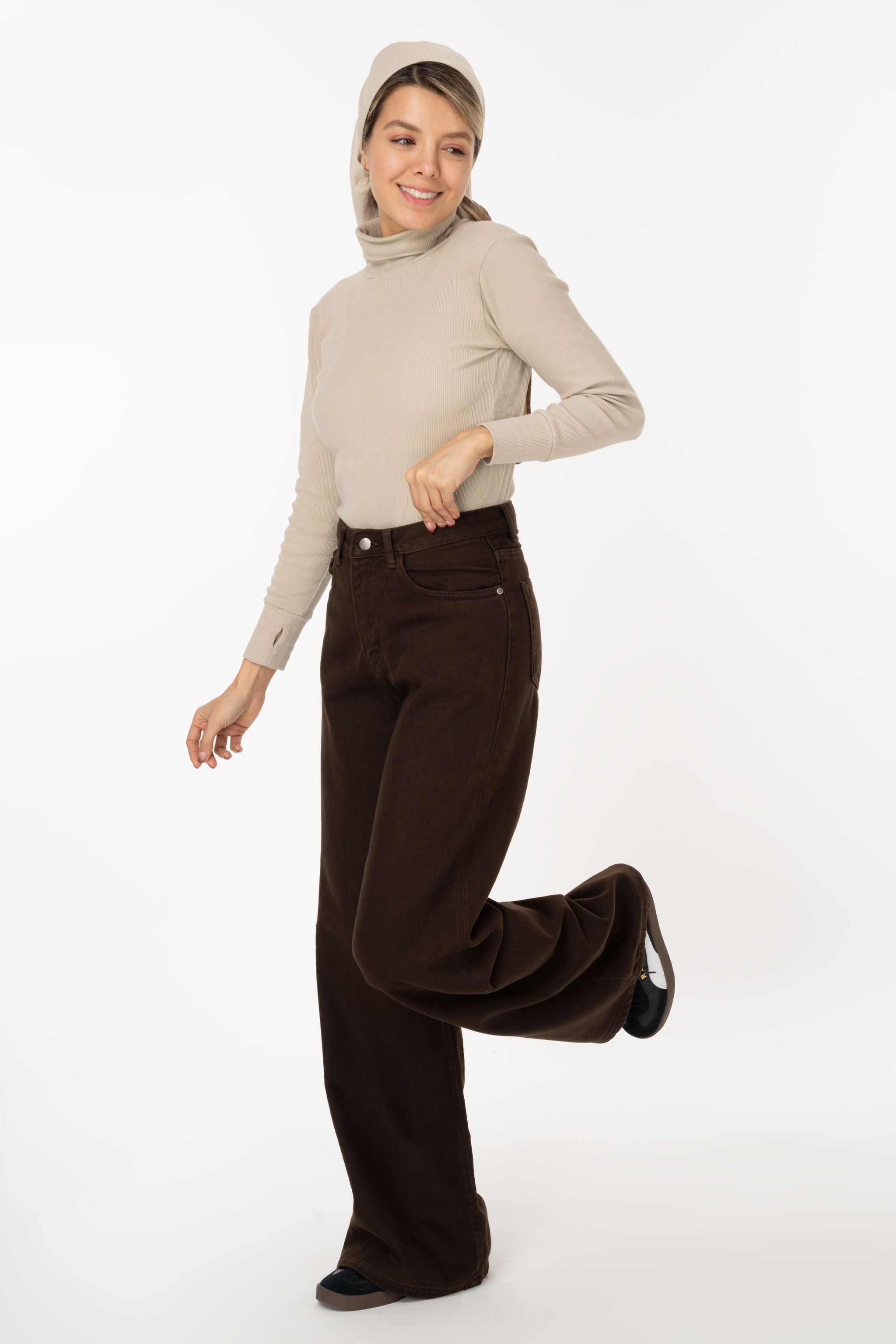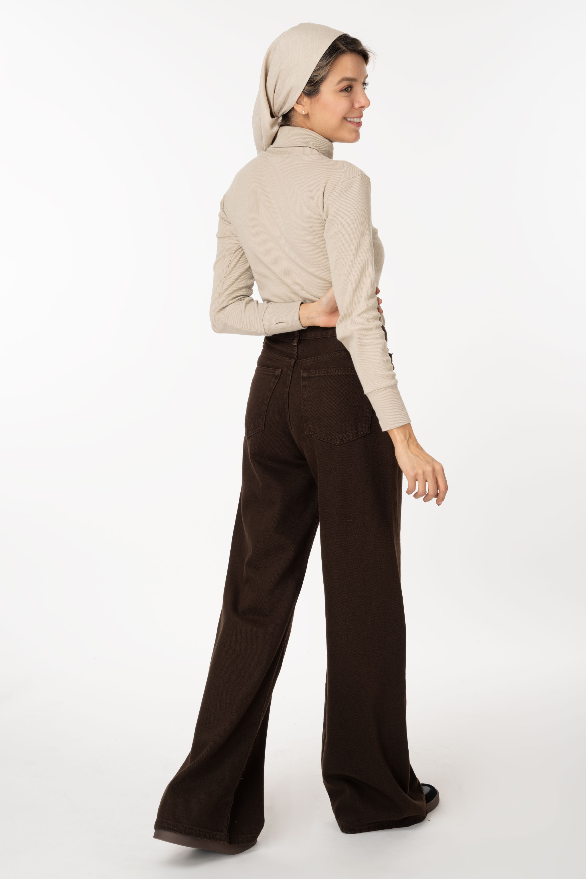 شلوار جین زنانه بگی قهوه ای تیره جک پات ریزشی رویال royal jeans