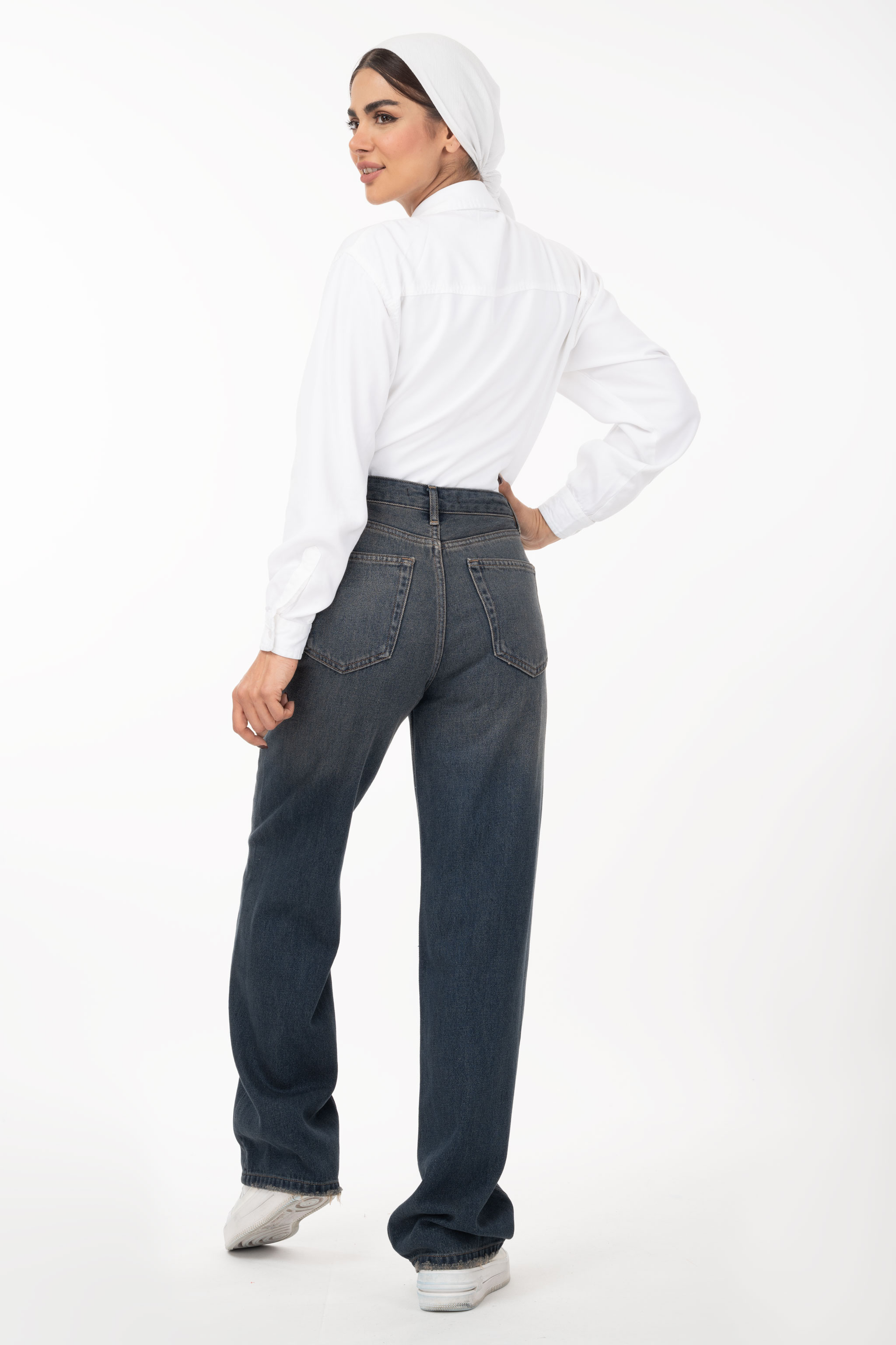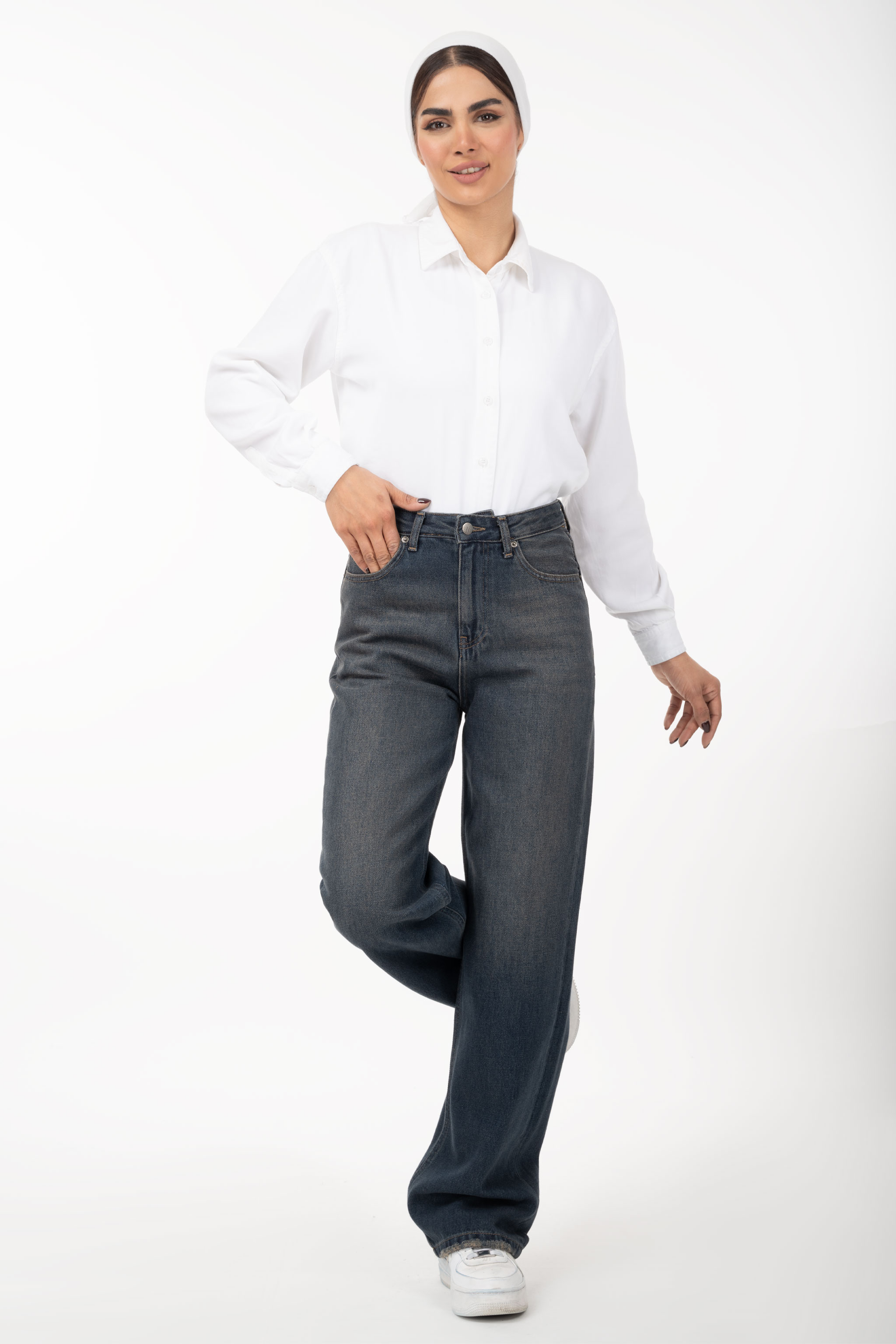 شلوار جین زنانه نیم بگ آبی تیره کثیف شور رویال جک پات Royal Jackpot