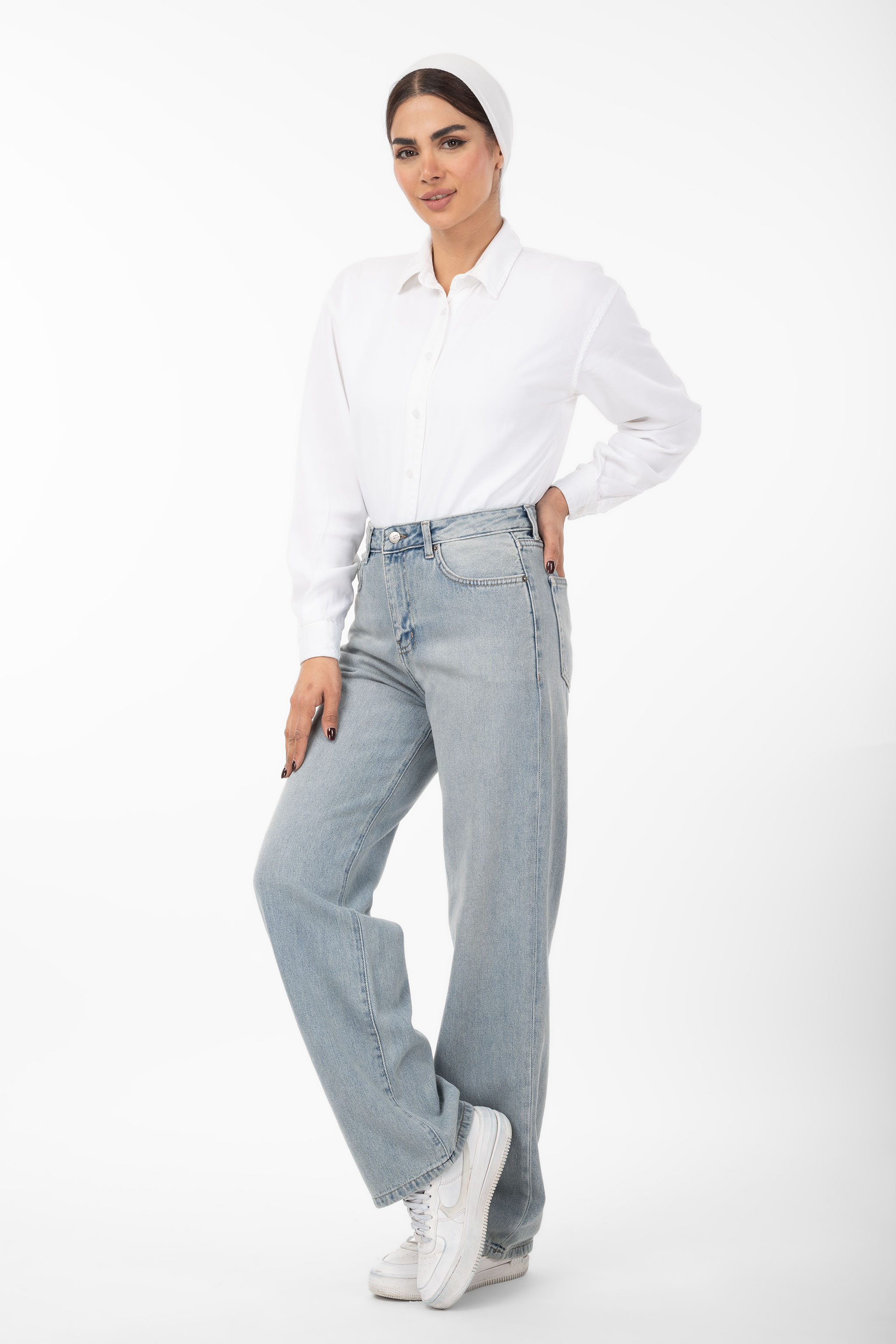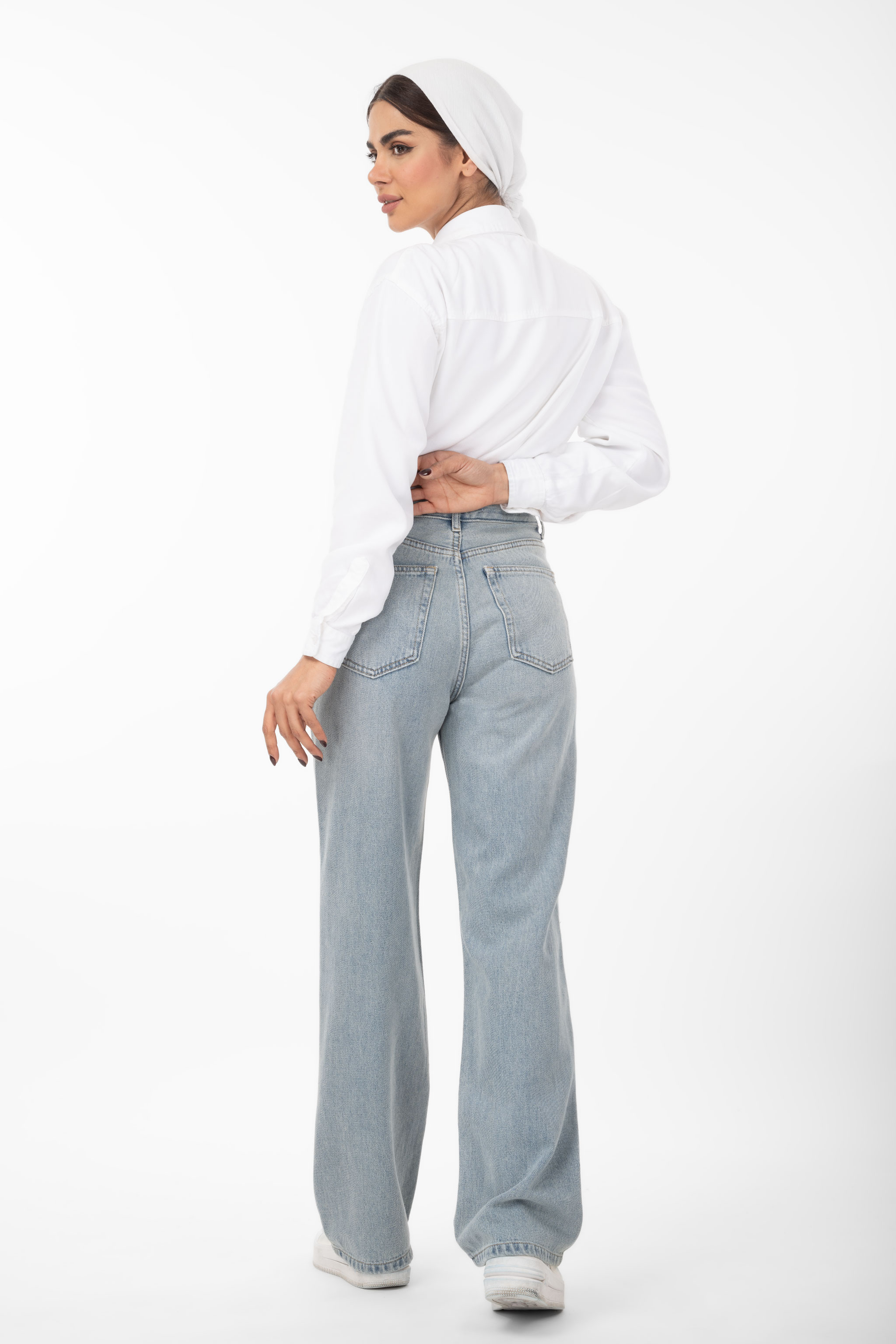 شلوار جین زنانه نیم بگ آبی یخی رویال جک پات Royal Jackpot
