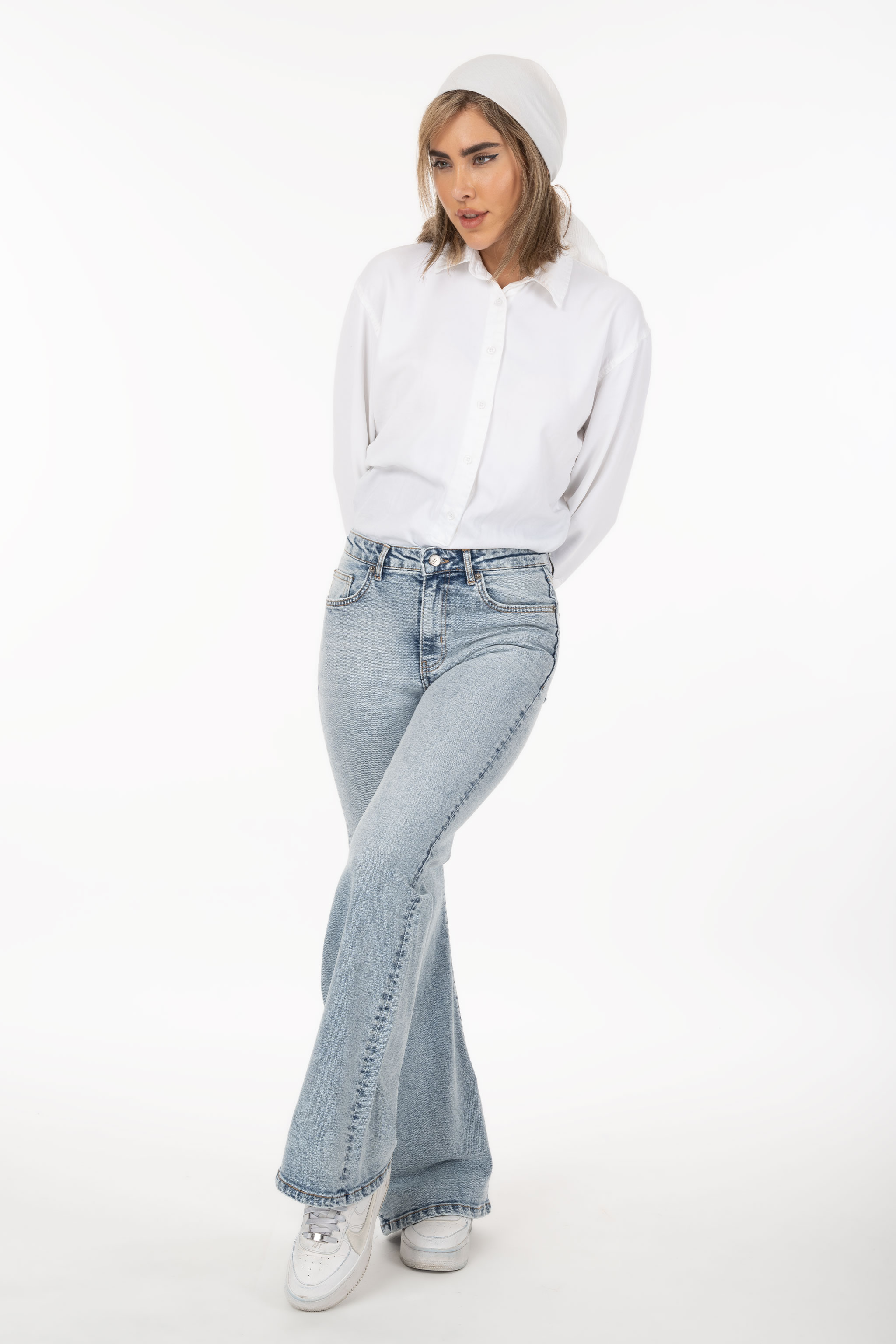 شلوار جین زنانه بوت‌کات آبی روشن رویال جین Royal jeans
