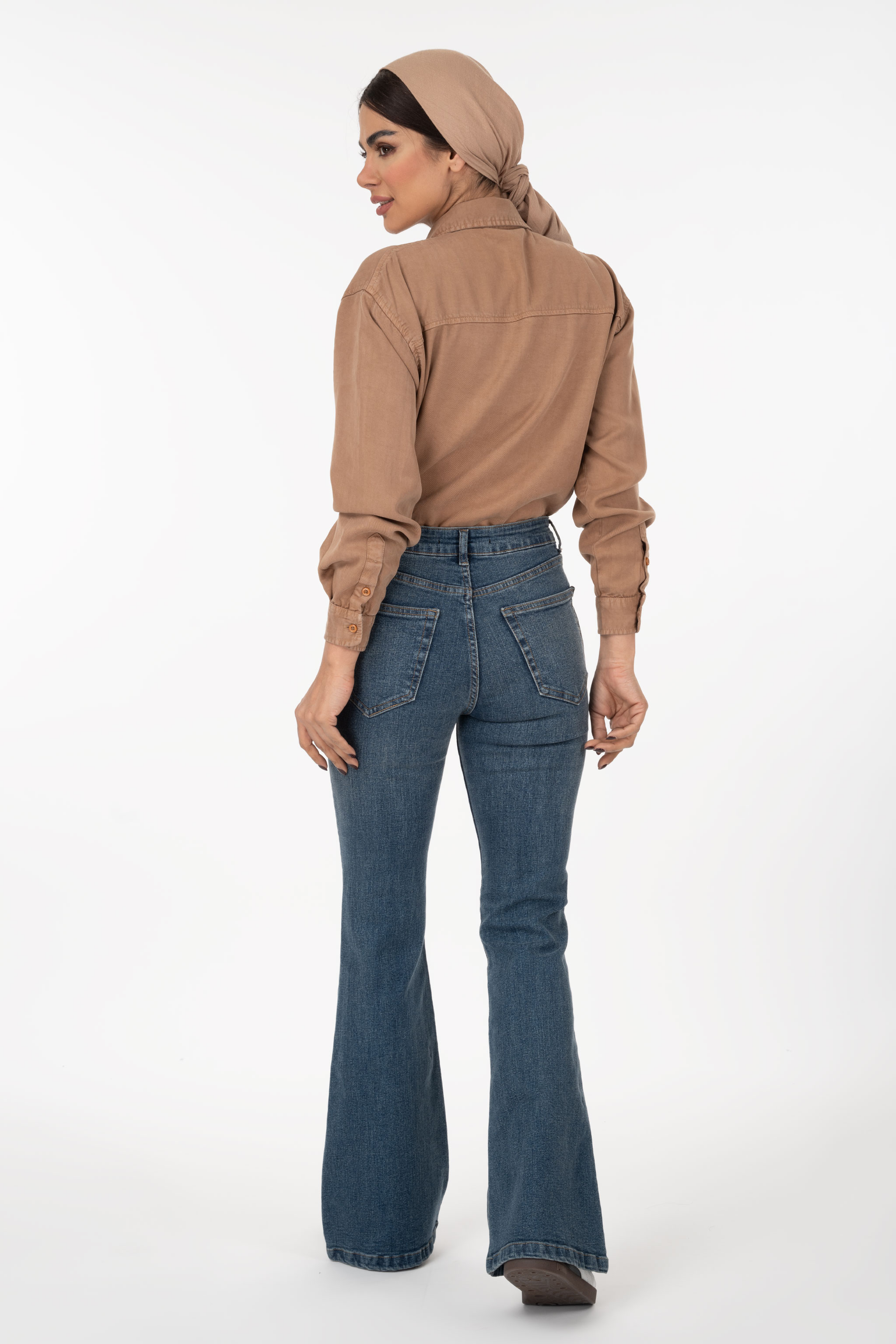 شلوار جین زنانه بوت‌کات فلکس(کشی) آبی وسط رویال جین Royal Jeans