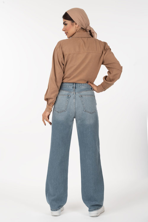 شلوار جین زنانه نیم بگ آبی وسط کثیف رویال جک پات Royal Jackpot