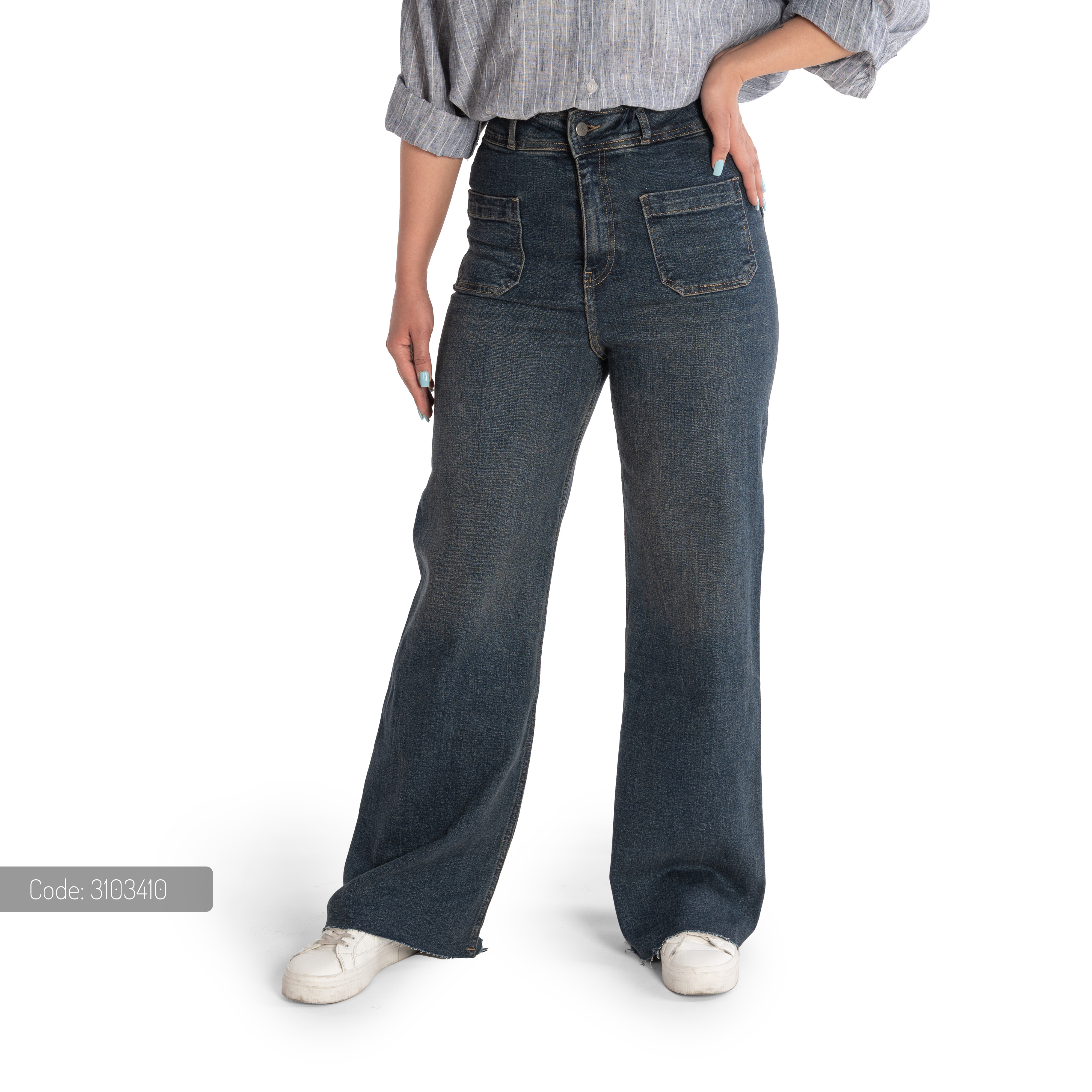 شلوار جین زنانه لوپ فلکس آبی تیره کثیف شور دمپا کات رویال جین Royal jean